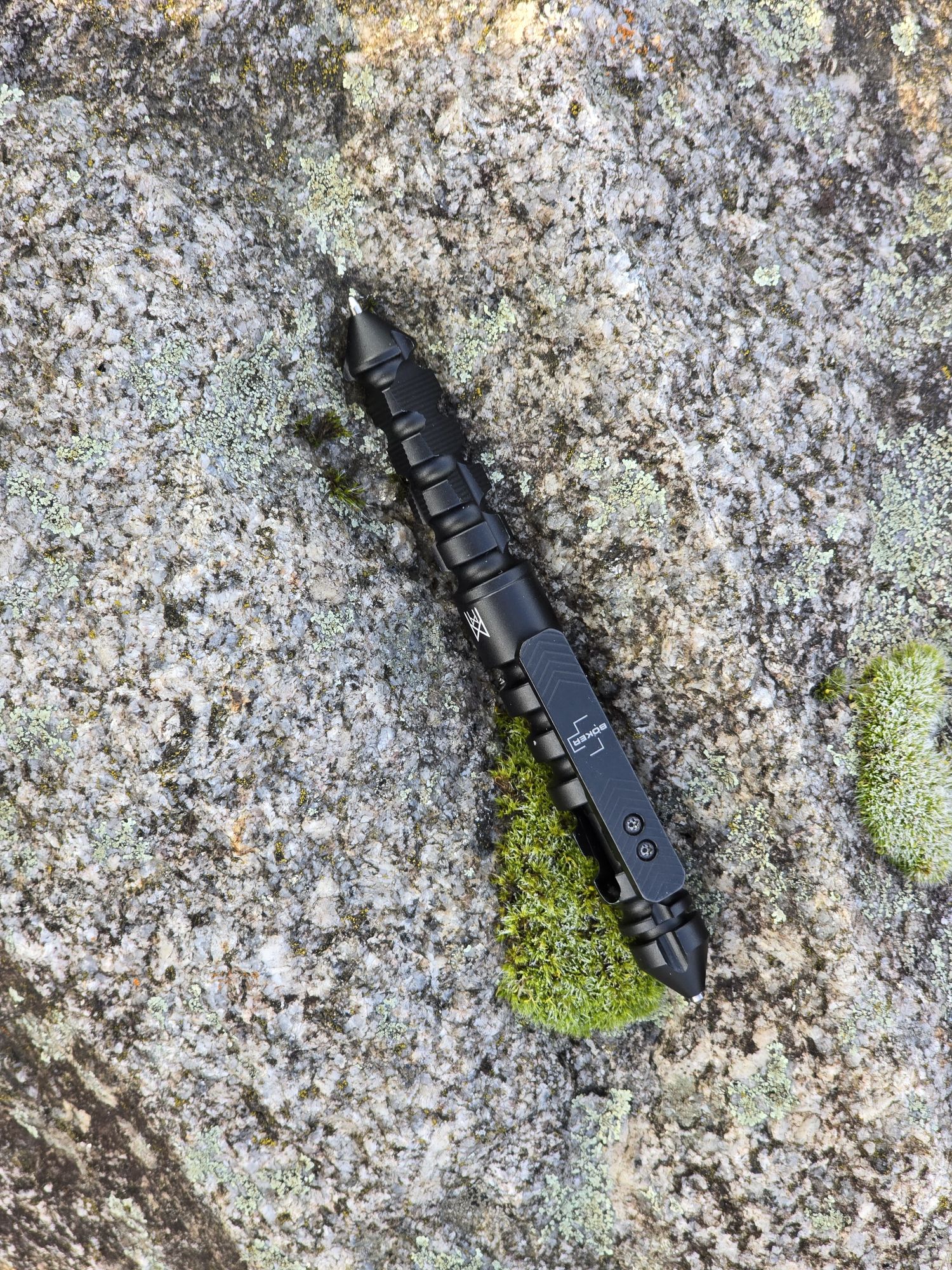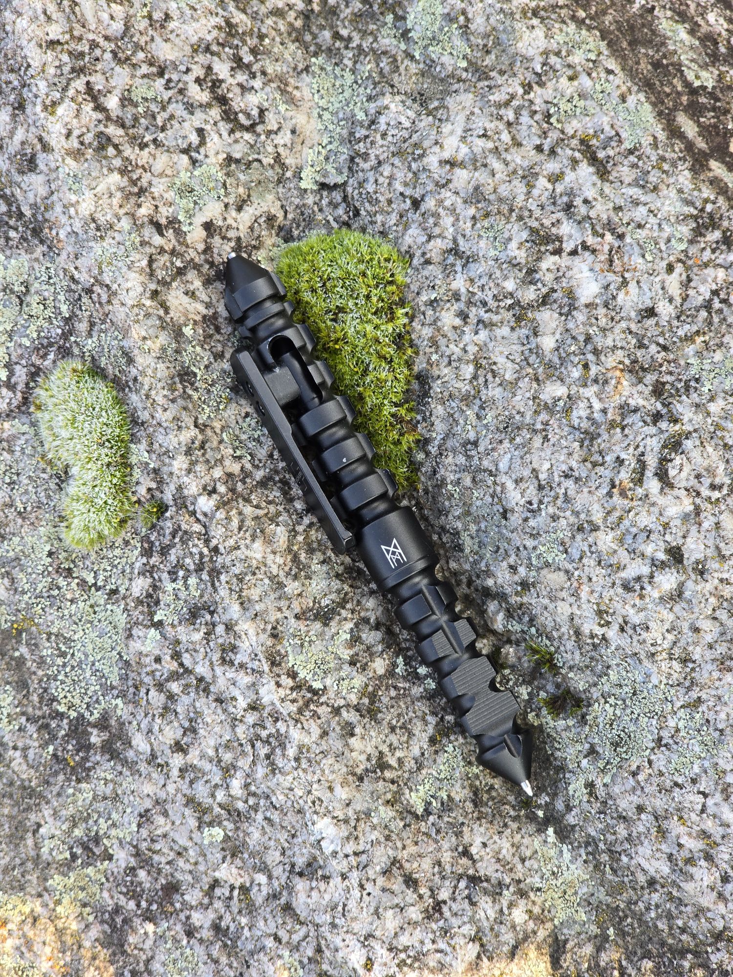Extravagant, kraftvoll, sagenumwoben Dirk Hofmeister von Midgards Messer ist bekannt für seine charakterstarken Entwürfe mit ausgeprägter Materialdimensionierung. Aus gutem Grund: Um den nordischen Göttern wohlgesonnen zu bleiben, sind feinste Materialien, eine unverwüstliche Bauweise sowie ein mythisches Design unabdingbar. Der Böker Plus Fat Box Pen reiht sich als Tactical Pen in diese erlesene Riege ein und ist dank Gnade der Götter auch für die Erdenbewohner bestimmt. Ein präzisionsgefräster Körper aus schwarzem 6061 Aluminium bildet den hochfesten Kern des Kugelschreibers. Tiefe Rillen sorgen für außergewöhnlichen Haptik bei der Verwendung als Kubotan, während die abgeflachten, geriffelten Bereiche im vorderen Teil angenehmen Halt beim Schreiben versprechen. Ähnlich eines Repetierers drückt der wuchtige Clip mit Midgards Logo die Großraumminen (ISO 12757-2) aus- und in den Stift. Mit Glasbrecher aus gehärtetem Stahl am Griffende.