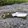 Die Klinge besteht aus unserem brandneuen Hybrid Cryo Stahl – entwickelt für extreme Schärfe, überlegene Schneidleistung und beeindruckende Standzeit. Mit 6,5 cm Klingenlänge, 3 mm Stärke und kompromissloser Schärfe ist dieses Messer ein Werkzeug und Statement zugleich.