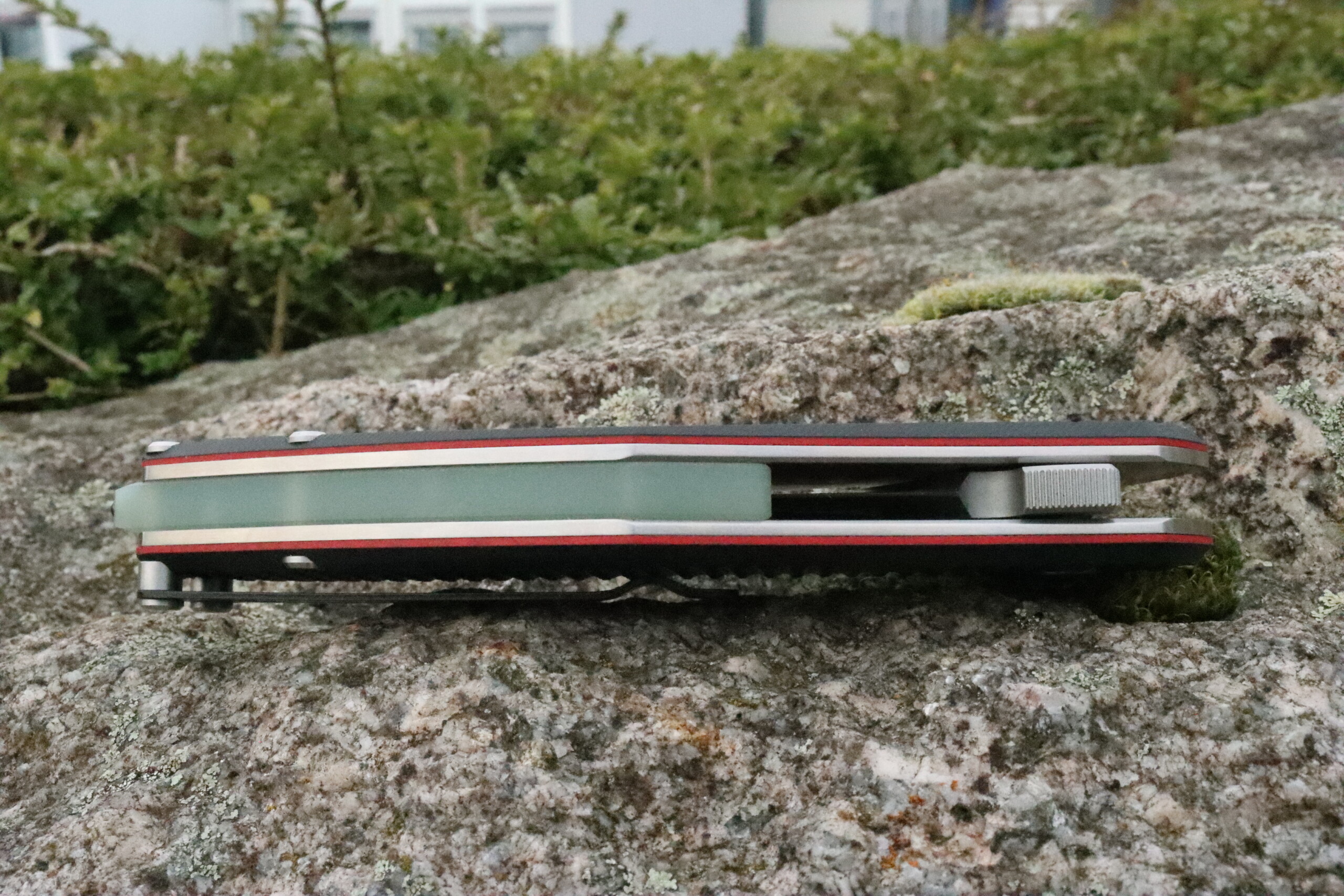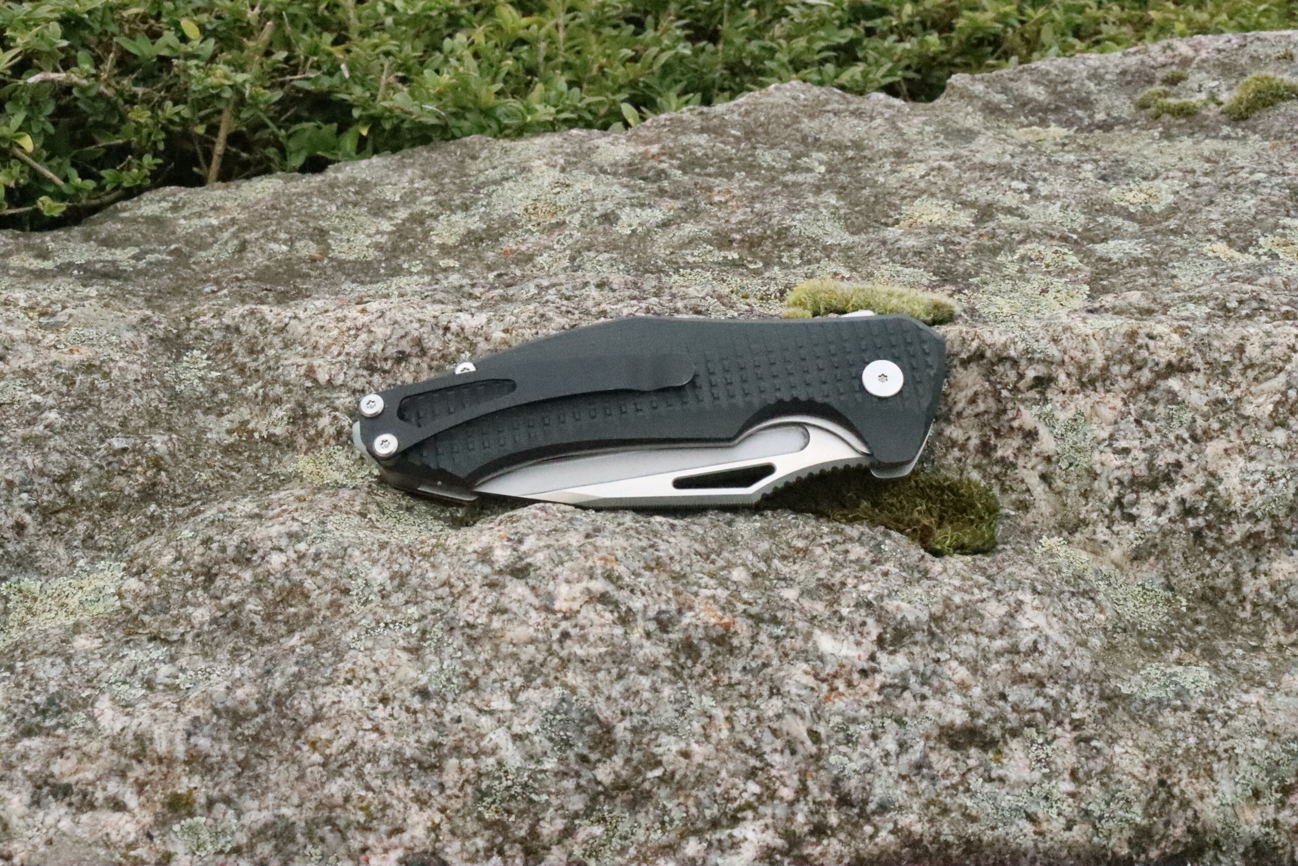 Das Smilodon besticht nicht nur durch seine hochqualitativen Materialien wie  dem 14C28N Stahl oder dem ergonomischen G10 Griff, sondern auch mit seiner außergewöhnlichen Optik.  Die Klinge hat eine Aussparung, die das schlanke Design des Messers widerspiegelt und der Griff wird von einem roten Liner geschmückt. Technisch hat es im Gegensatz zu vielen anderen Foldern den Vorteil, dass es eine Frame lock Sperre hat, um den Verschlussmechanismus nicht zu überlasten.